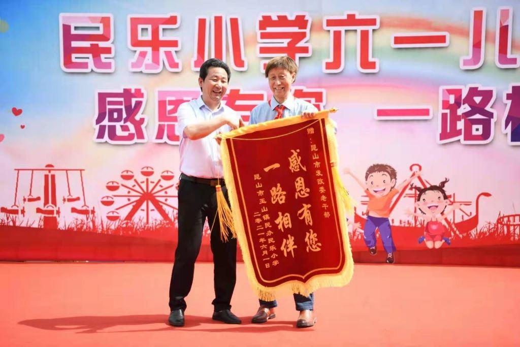 同時(shí)昆山市玉山鎮(zhèn)民辦民樂(lè)小學(xué)為昆山市發(fā)改委老干部獻(xiàn)上愛(ài)心錦旗。17年前昆山發(fā)改委的老干部在王書(shū)記和周顧問(wèn)的倡導(dǎo)下,開(kāi)始了對(duì)民樂(lè)小學(xué)的持續(xù)幫扶和資助,累計(jì)捐款45萬(wàn)。